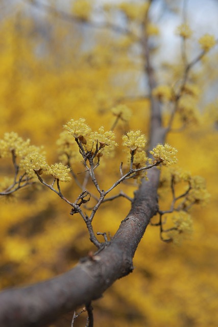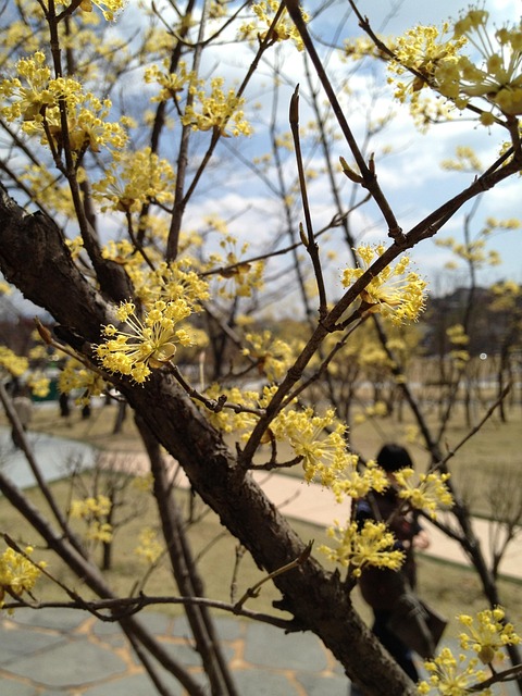 사진 촬영을 원한다면 오전 10시~오후 2시 사이가 좋습니다. 이 시간대에는 햇살이 잘 들고 하늘도 맑아 노란 산수유 꽃이 더욱 아름답게 보입니다.